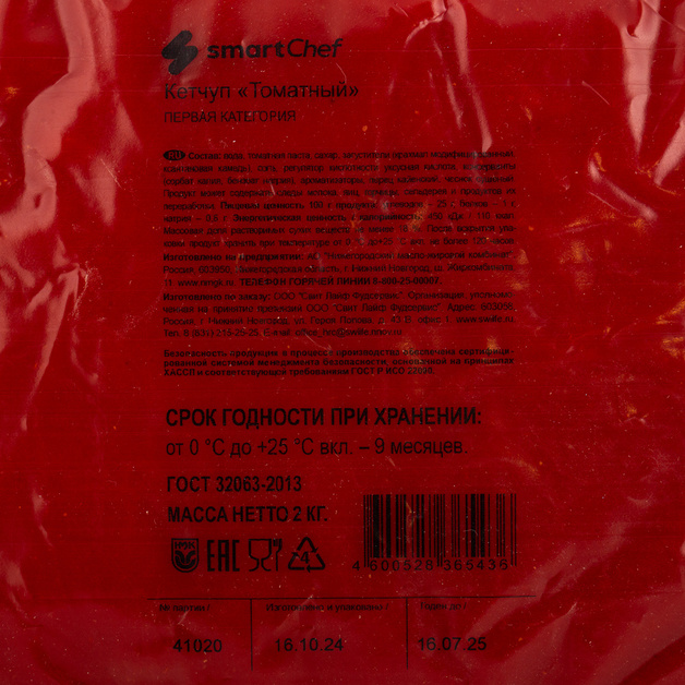 Кетчуп томатный Smart Chef любое блюдо может сделать вкуснее. Важно дополнить его правильным компонентом. Он создан из свежих овощей по классическому рецепту. Идеально подойдет к мясу, рыбе, спагетти, макаронам, рису, картофелю. Кетчуп томатный реализуется в индивидуальной упаковке.