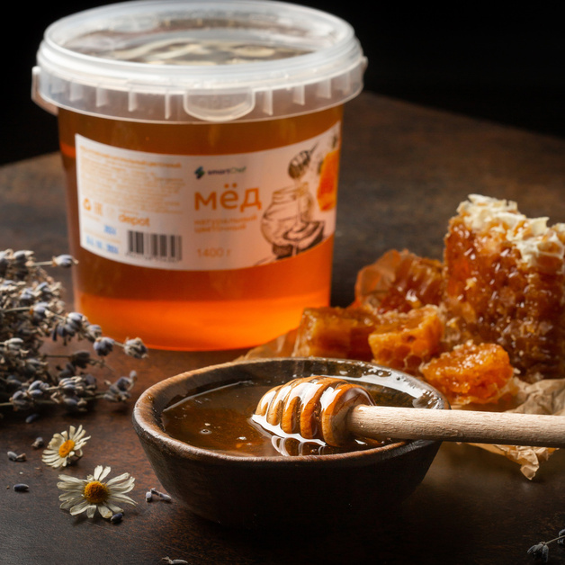 Мед натуральный цветочный - идеальный выбор для использования в качестве сладкого гарнира к тостам, йогурту или горячим напиткам в вашем заведении.