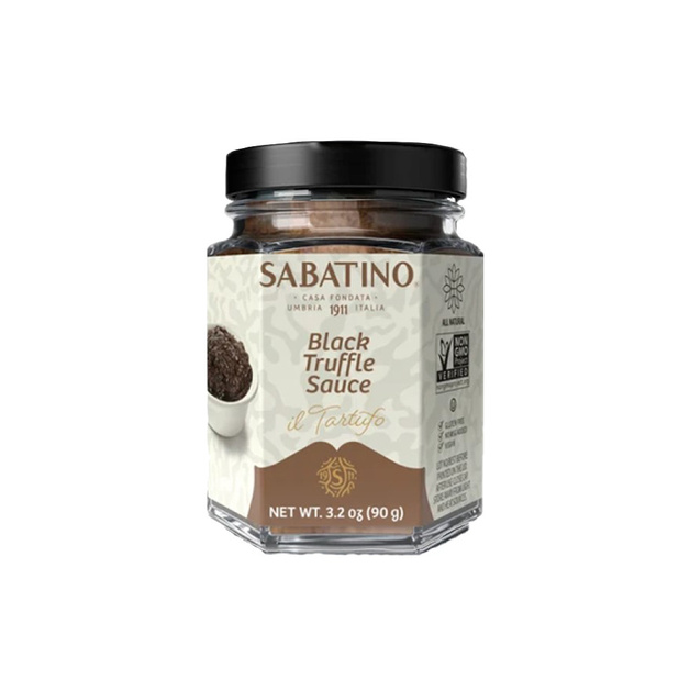 Соус из черных трюфелей с добавлением шампиньонов имеет насыщенный вкус и густую консистенцию с кусочками грибов. Продукт сочетается с овощами, пастой, рисом, белым и красным мясом. Процентное содержание трюфеля - 5%.