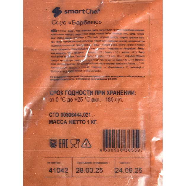 Соус Smart Chef барбекю - идеальный выбор для приготовления мясных блюд на гриле или с добавлением к пицце, придаст блюдам насыщенный вкус.