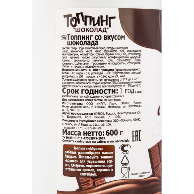 Топпинг абрико шоколад - отлично подойдет для украшения и дополнения вкуса мороженого, пирогов и десертов.