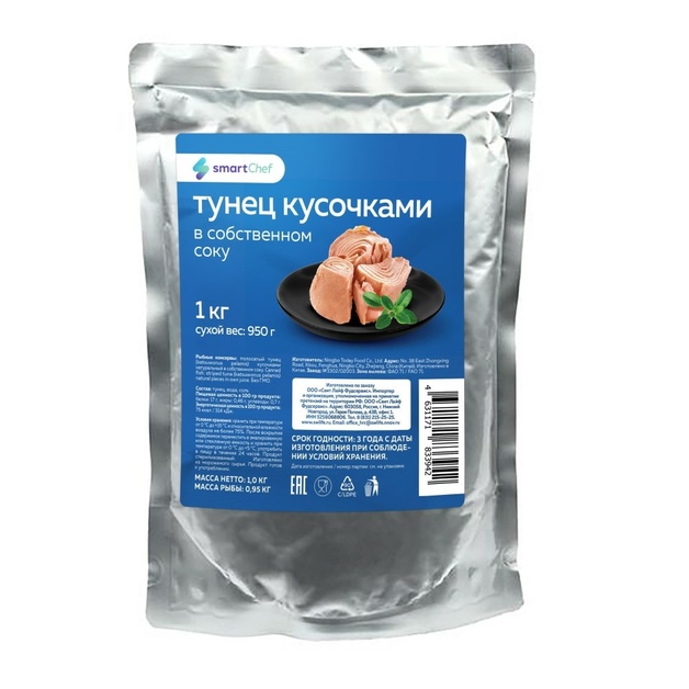 Тунец Кусочками Smart Chef в Собственном Соку Китай 1кг Сух. Вес 950г